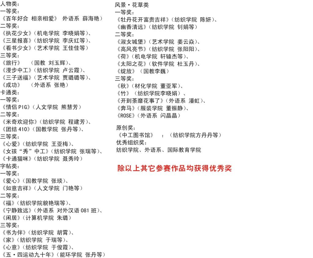 中工十字绣大赛获奖名单