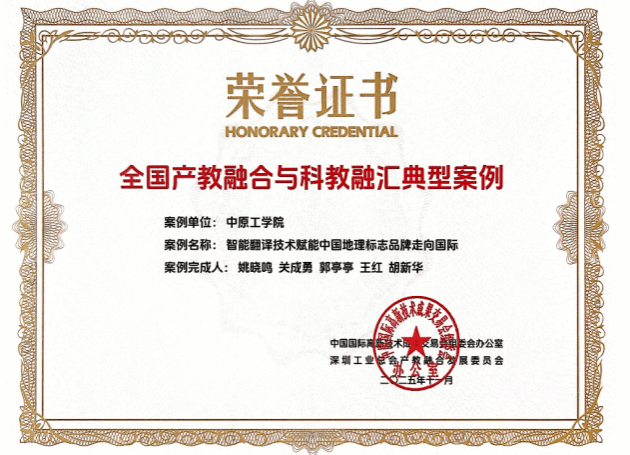 11月14日至16日,第二十七届中国国际高新技术成果交易会(简称“高交会”)暨2025第二届产教融合与科教融汇论坛在深圳举行。会上,由学校研究生处推荐,我院院长姚晓鸣教授团队完成的《智能翻译技术赋能中国地理标志品牌走向国际》产教融合案例,从全国586个案例中脱颖而出,成功入选“全国产教融合与科教融汇典型案例”并在高交会上展示,吸引了与会专家、学者及产业界代表的广泛关注。