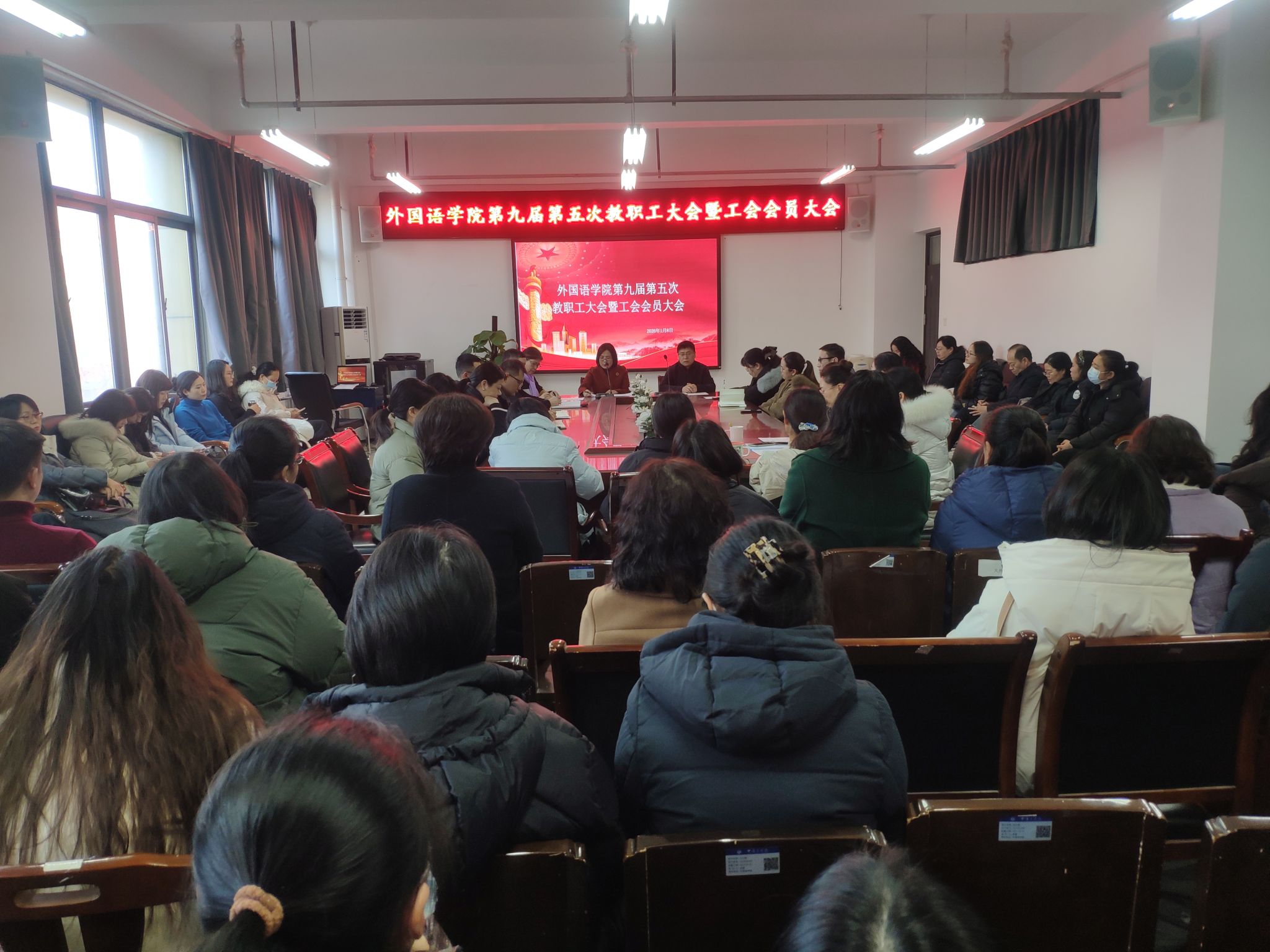 2026年1月8日下午,williamhill威廉希尔第九届第五次教职工大会暨工会会员大会在402会议室召开,williamhill威廉希尔全体教职工参加了此次大会,会议由williamhill威廉希尔工会主席闫秋霞主持。