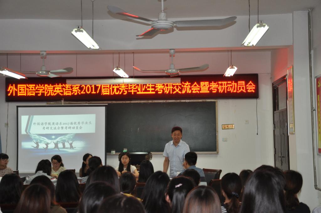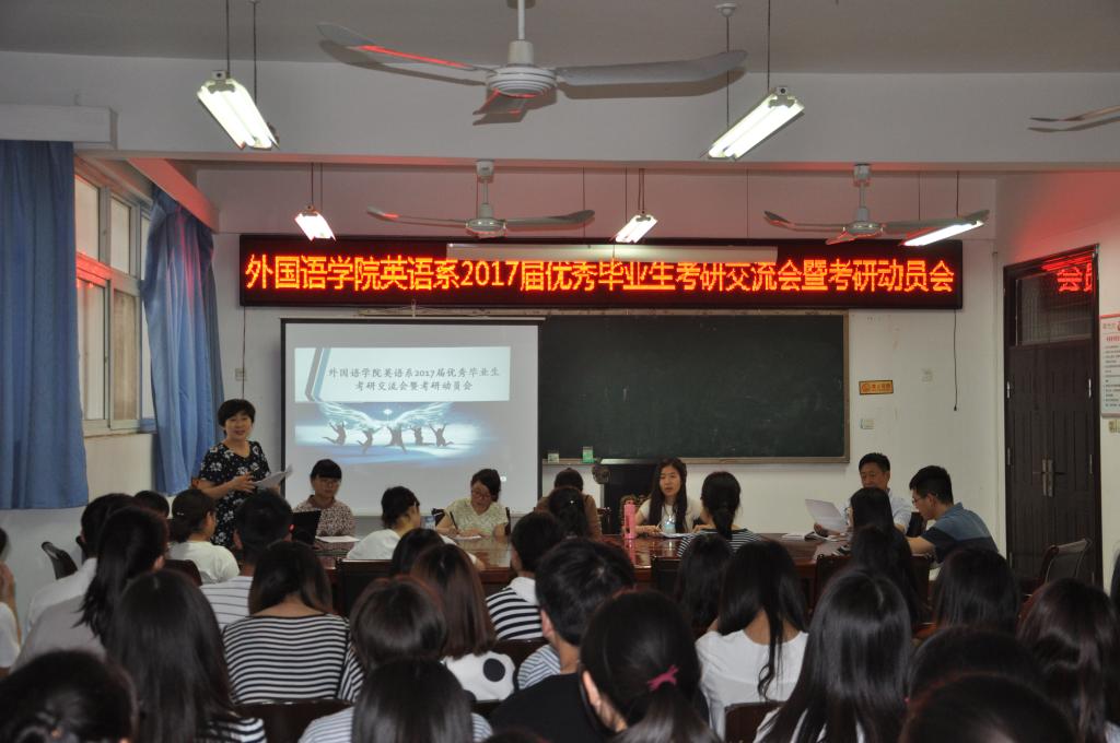 会议由刘丽老师主持,她介绍了此次交流会的目的和意义;郭院长发表了讲话,鼓励同学们务必要脚踏实地、持之以恒地实现自己的“考研梦想”。