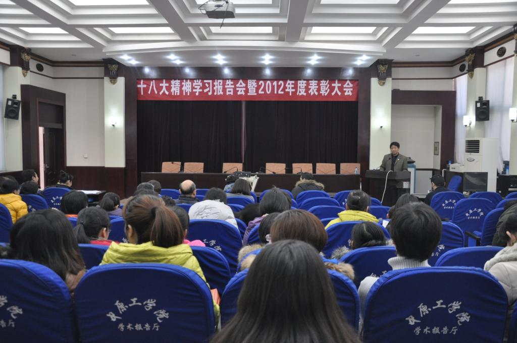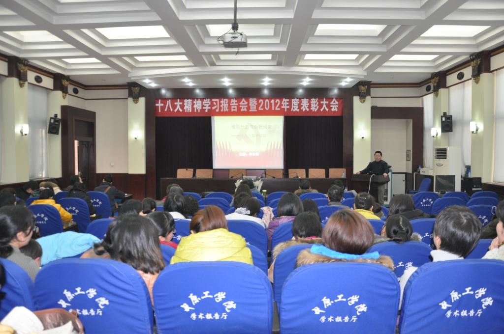 2013年1月11日下午两点,williamhill威廉希尔十八大学习报告会暨2012年度表彰大会在北区图书馆一楼学术报告厅召开,教务处处长李惠杰与我院全体教职工参加了本次会议。
