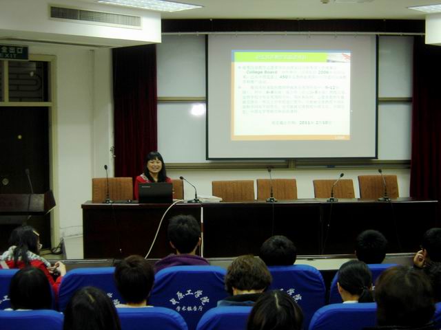 2011年11月3日晚6:10,王惠瑜老师在四号楼311教室举行了关于赴美对外汉语教学的讲座。