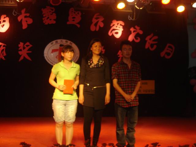 一曲柔情绵绵的的葫芦丝《月光下的凤尾竹》之后是最令人激动的本届外文歌曲大赛颁奖仪式。我院的吕青以歌曲《Think of me》,杨璇以歌曲《The color of the night》最终获得二等奖。最后,莅临本场晚会的秦秀白教授为一等奖获得者颁发了证书,并对如何学好英语谈了自己的看法,受到了同学们的欢迎。