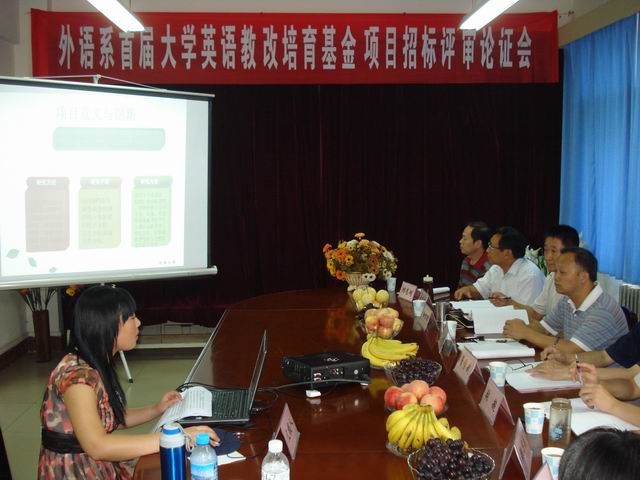 为鼓励教师积极开展教学研究,进一步提高我校大学英语教学质量,9月4日,外语系召开了首届大学英语教改培育基金项目招标论证会。校教务处处长刘让同、副处长张超,校教学评估中心主任董学武及外语系学术委员会成员参加了会议。