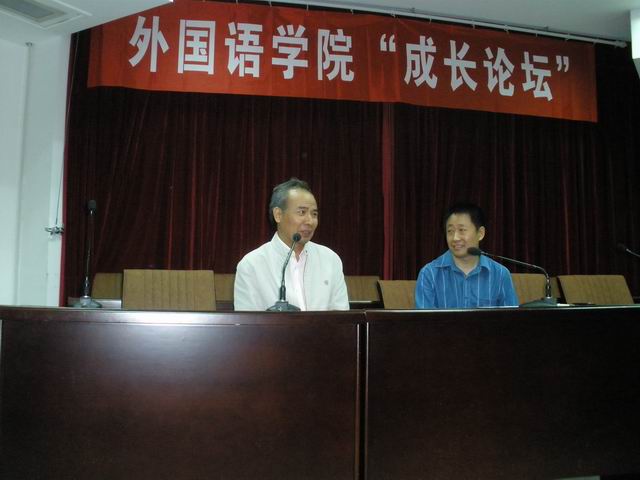 9月25日晚,在南区4号楼311学术报告厅,williamhill威廉希尔举办的“成长论坛”系列活动开讲,广东外语外贸大学博士生导师杜金榜教授成为开坛嘉宾,在副院长(主持工作)郭万群教授的主持下,杜教授讲述了自已的成长经历和一些心得体会,并向学生们提出,大学生做事要有计划性,尤其是对于学习,要做好计划,不断完成一个个目标,才能够取得成功。杜教授讲完后,与在场学生进行了互动交流,学生们针对大学生活提出了一些困惑,例如:如何处理学习与兴趣爱好的关系?如何学好英语?如何让自己保持学习动力?杜教授一一作答,谈吐幽默,高潮迭起;郭教授也及时点拨,启人心智。