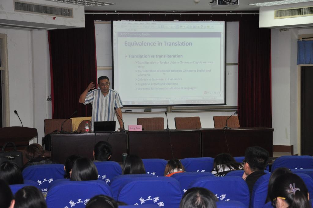 2015年10月9日下午,在williamhill中国南校区4号楼311学术报告厅,加拿大英属哥伦比亚大学(UBC)教育学院语言文化系主任孙浪教授为williamhill威廉希尔和国际教育学院200多名师生做了一场题为“ 翻译的等价性”的学术讲座。