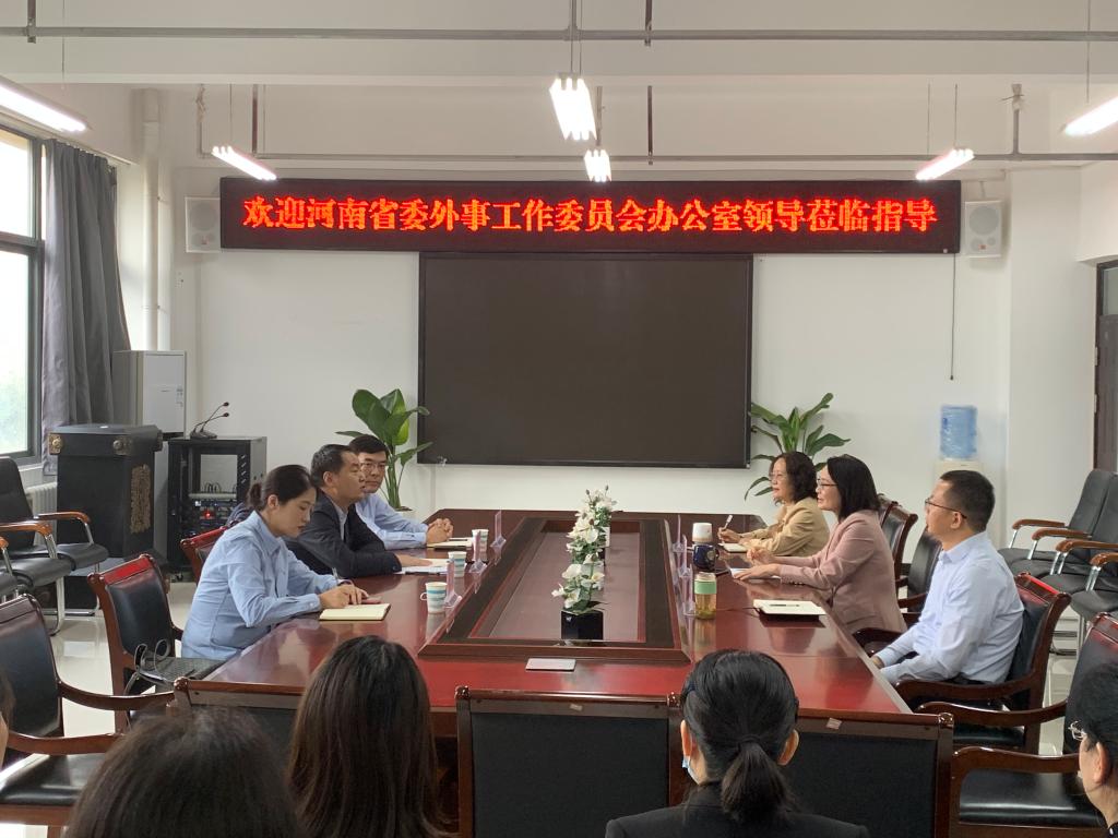 10月8号下午,河南省委外事工作委员会办公室人事处处长杨好平、翻译室主任陈国良、翻译室一级主任科员陈琦一行3人莅临我院开展调研座谈。williamhill威廉希尔党委书记柳素平、院长姚晓鸣、副院长柴高洁、教师代表及翻译硕士生代表参加座谈会。