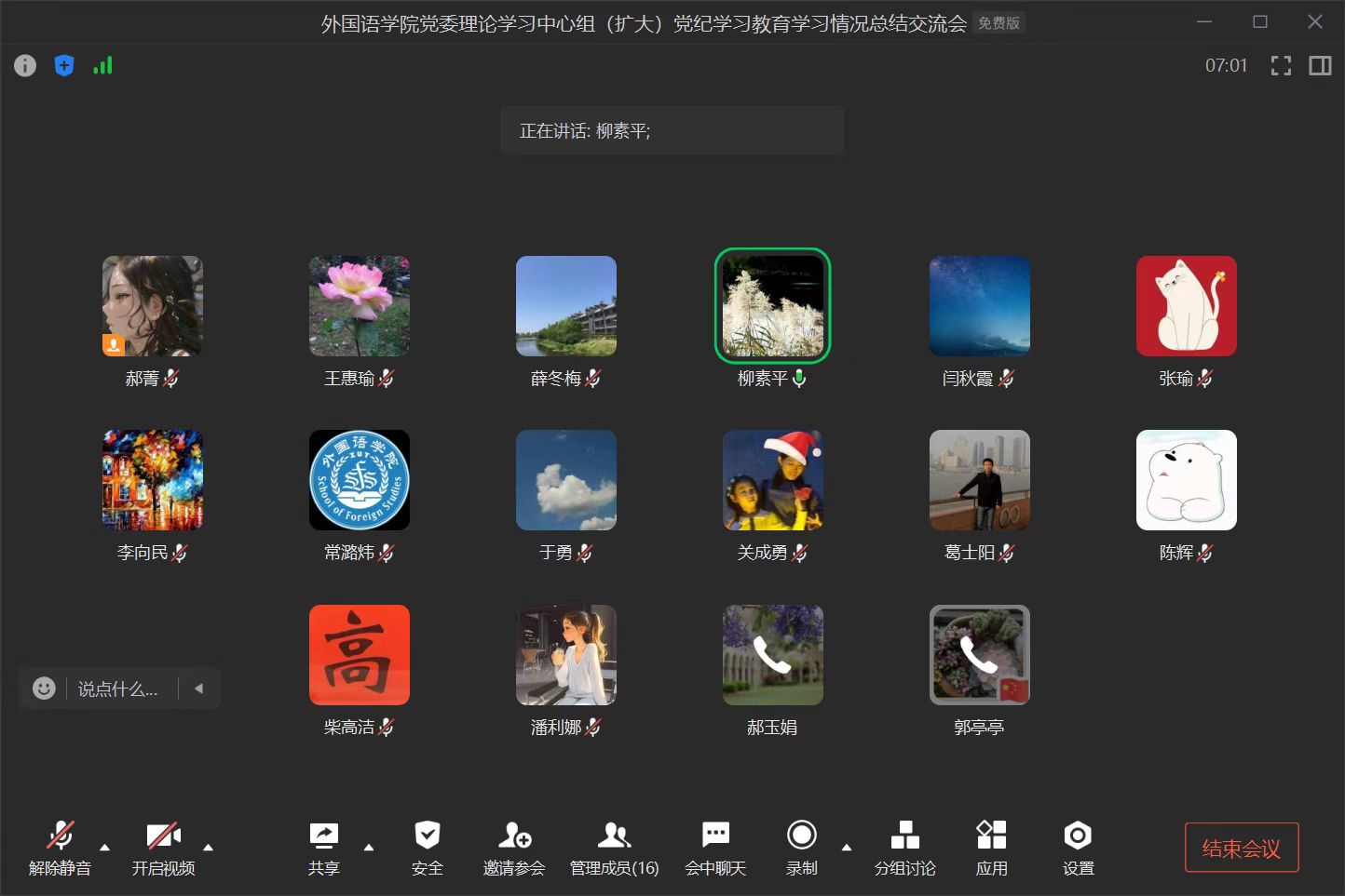 7月20日,williamhill威廉希尔召开党委理论学习中心组(扩大)学习会议,开展党纪学习教育学习情况总结交流。学院党委委员、各支部书记参加会议,学院党委书记柳素平主持学习。