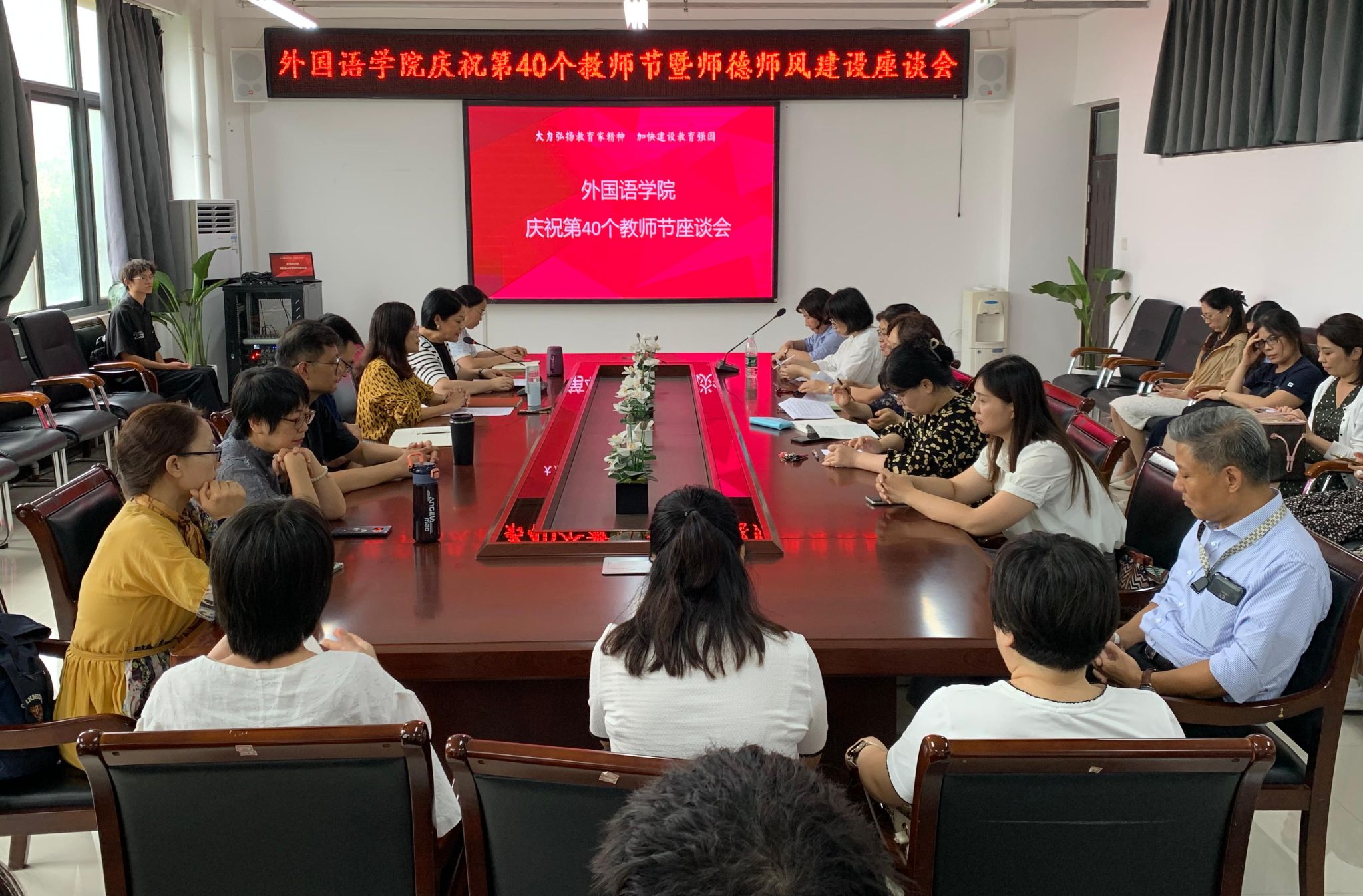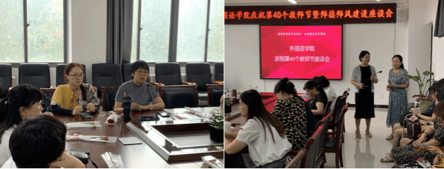 为了庆祝第40个教师节,持续加强师德师风建设,9月10日下午,williamhill威廉希尔在龙湖校区3号组团楼A402会议室举办了师生座谈会。副院长薛冬梅主持会议,学院班子成员、教师及学生代表共40余人参会。