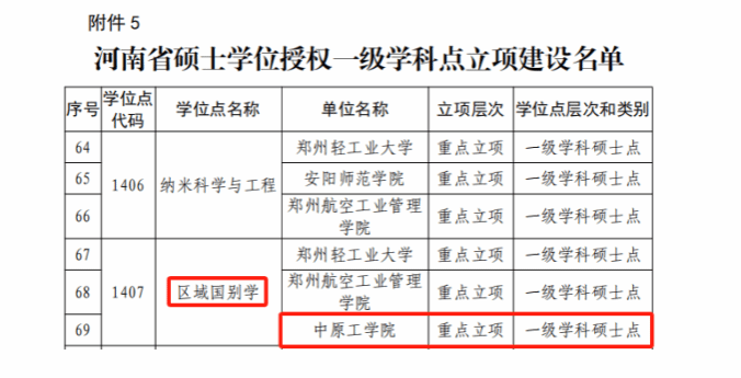近日,河南省教育厅、河南省发展和改革委员会、河南省财政厅联合下发《关于公布河南省博士硕士学位授予单位和学位授权点立项建设名单的通知》(教研〔2025〕20 号),我院申报的区域国别学获批河南省硕士学位授权一级学科点重点立项建设。