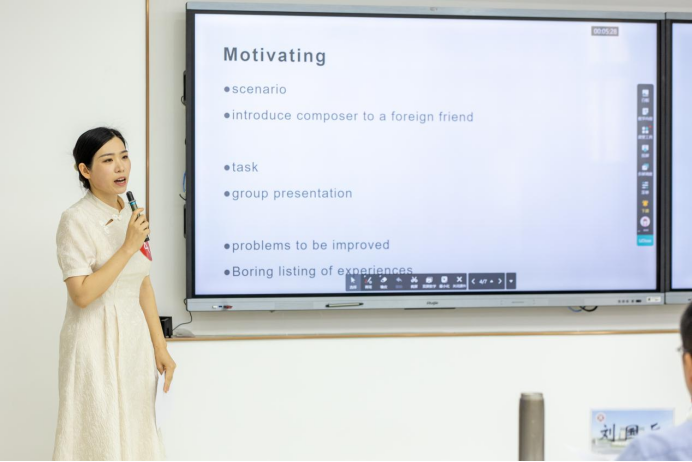 李佳通过对授课单元进行了深入解读,不断完善和优化教学设计和方案。在多轮磨课和讨论后,李佳坚持“产出导向法”和“以学生为中心”的教学理念,最终确定设计方案,在复赛中一展风采,赢得了评委的一致肯定,得到授课环节小组最高分,晋级决赛。在说课环节,李佳在有限时间里对授课文本材料进行深入全面分析,有效地体现了教学思路的高阶性、授课步骤的科学性与教学方法的创新性。