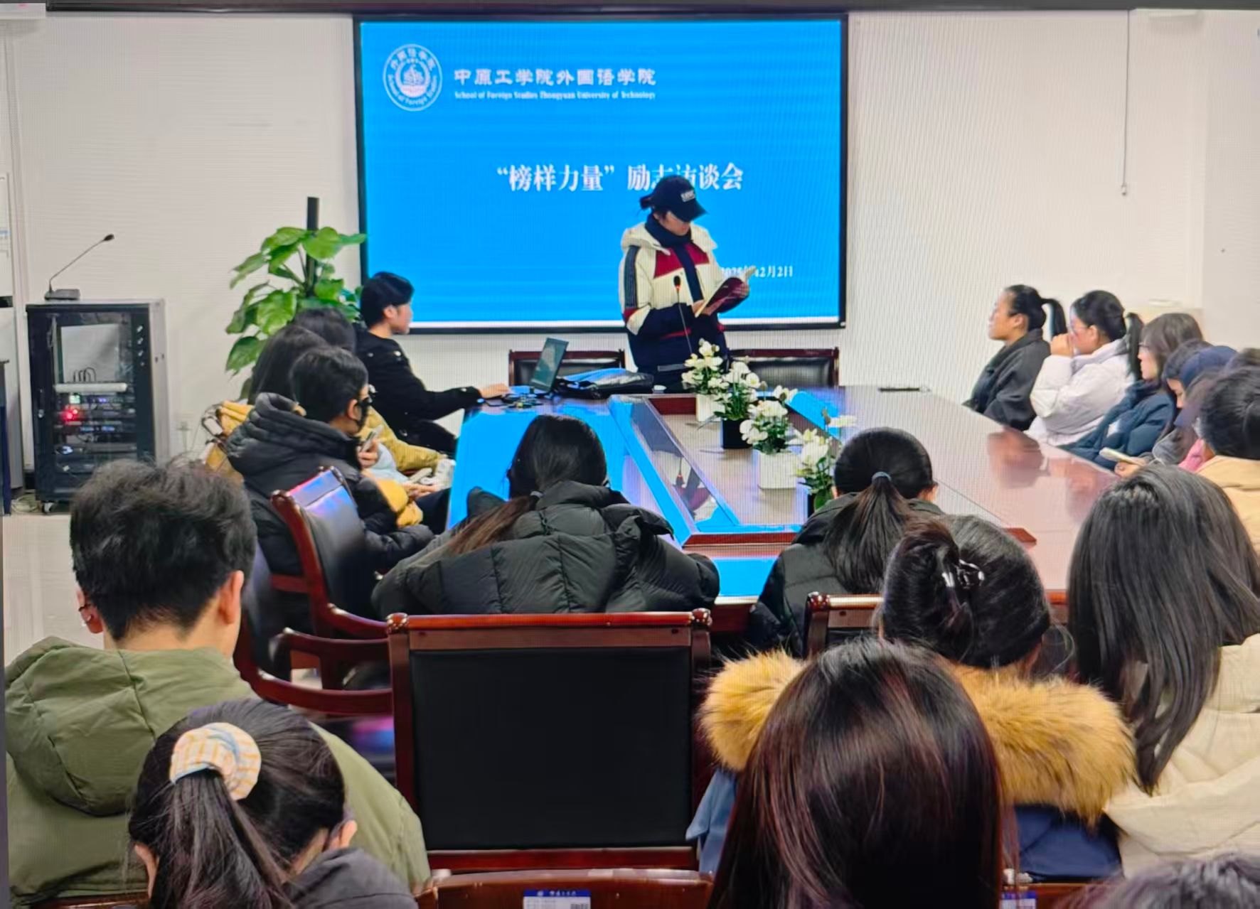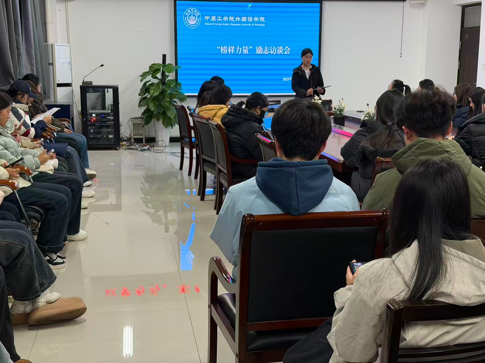 2025年12月2日晚,williamhill威廉希尔在三号组团楼A401会议室举办“榜样力量”励志访谈会。活动以“聆听榜样故事,汲取奋进力量”为主题,面向2025级全体新生开展,通过身边榜样的真实分享,激励学生明确方向、踏实前行。