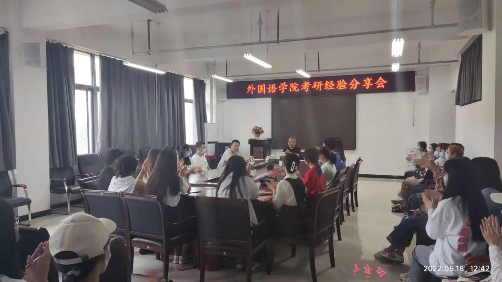 为进一步营造良好的学习氛围,助力我院学子复习备考,5月18日下午,我院考研经验交流会在三号组团楼A402会议室举行。2019级有意向考研的学生参加会议。2018级考取硕士研究生的学生代表肖海涛、刘怡华、邢倩分享心得体会,畅谈复习备考经验,常潞炜、葛士阳、许君风三位老师到会鼓励准备考研学生坚定目标,端正态度,持之以恒,科学备考。(通讯员 葛士阳)