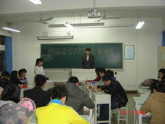2012年10月31日晚六点三十分,由我院学习部举办的williamhill威廉希尔辩论赛在11号楼308,312,317举行。本次辩论赛决赛面向11、12级同学,共分三场举行。