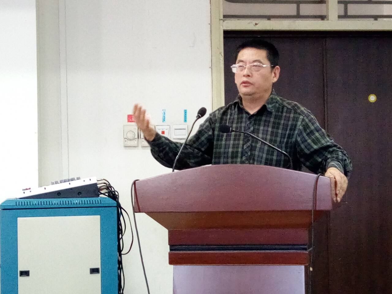 图二、郭万群院长向同学们介绍专业及学业规划教育、学院学科建设、科研情况等。