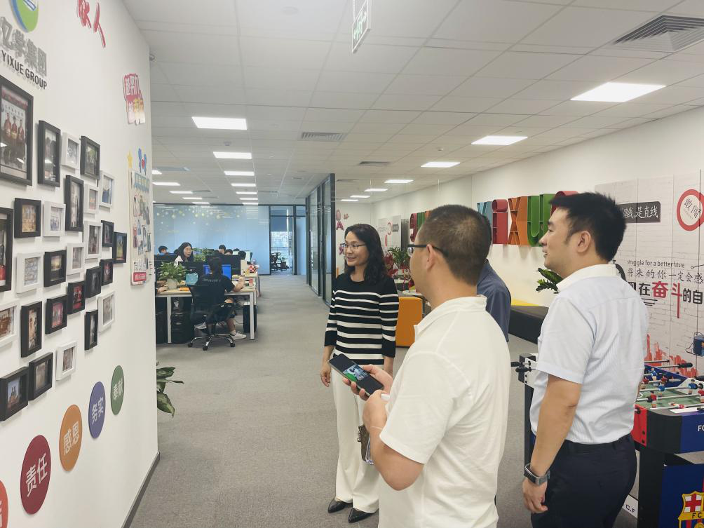 在亿学集团董事长连敏辉,副总经理柳小刚,区域总监张鹏飞等人的陪同下,姚晓鸣一行参观了亿学集团展厅,深入工作现场,考察企业文化、发展历程、企业产品、工作环境等。