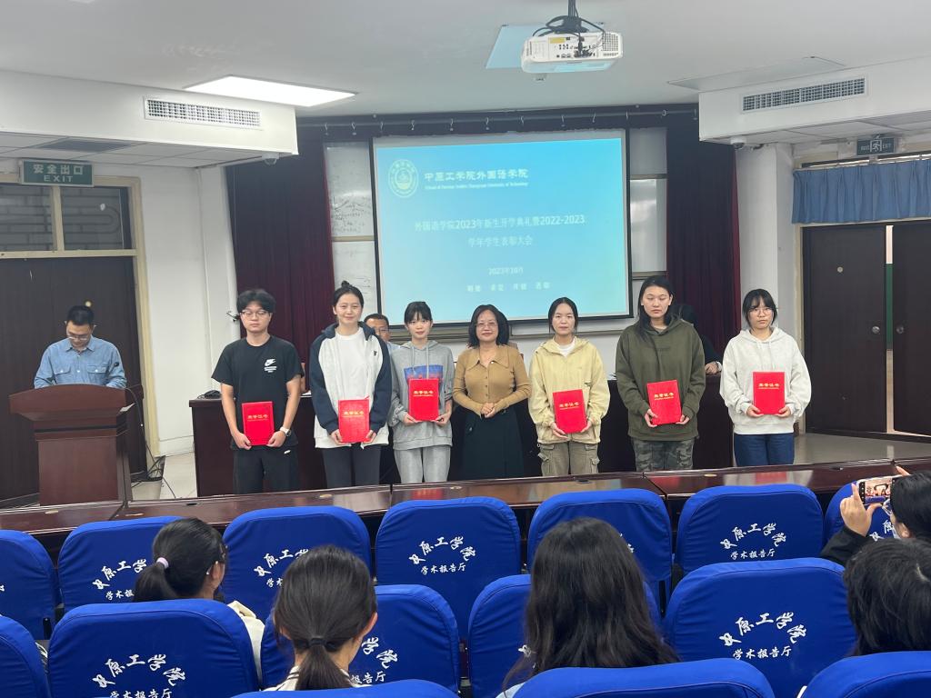 大会首先对优秀学生进行了表彰。学院领导分别为获得2022—2023学年国家奖学金、国家励志奖学金及在各类学科竞赛获奖的同学颁发荣誉证书。
