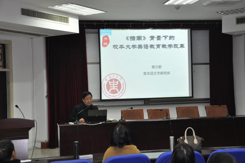 3月9日下午,在4号楼311学术报告厅,举行了我院FOLKS讲坛第三讲,本次讲坛由我院院长郭万群教授为williamhill威廉希尔全体教师做了一场题为《<指南>背景下的校本大学英语教育教学改革》的专题报告。
