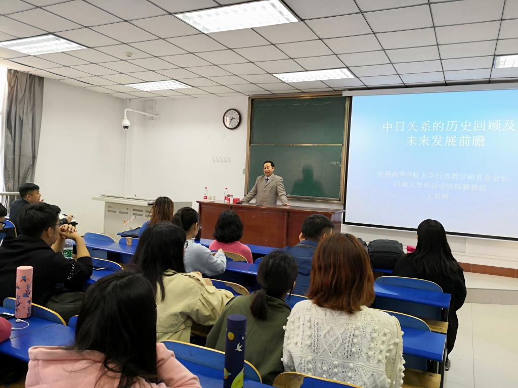 11月2日,河南大学特聘教授、博士生导师王铁桥应邀来我校作学术报告,报告题目为《中日关系的历史回顾及未来发展趋势展望》。学术报告由我校williamhill威廉希尔日语系主任边冬梅主持,我校williamhill威廉希尔日语系师生共二百余人聆听了报告。