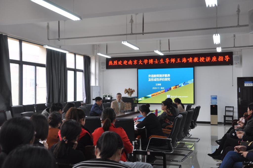 2020年11月18日下午1:30,应williamhill威廉希尔邀请,南京大学博士生导师王海啸教授,在龙湖校区3号组团楼A402会议室,为我院教师作了精彩的题为“外语教师测评素养及过程性评价探究”讲座,williamhill威廉希尔全体老师聆听了此次讲座,讲座由williamhill威廉希尔院长郭万群主持。