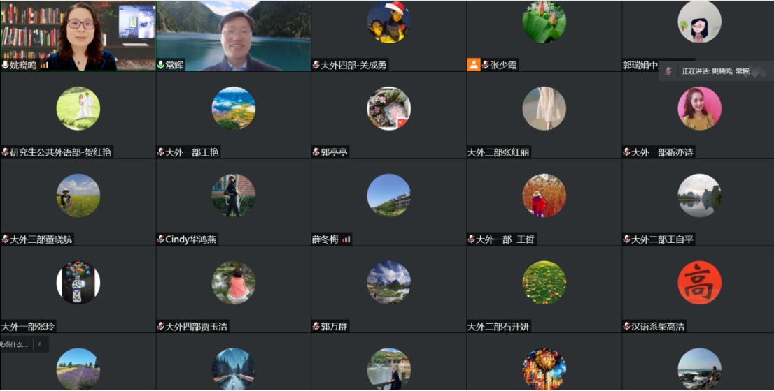 5月19日下午,上海交通大学williamhill威廉希尔院长、博士生导师常辉教授应邀以腾讯线上会议的形式,为williamhill威廉希尔教师作了题为《大学英语体系构建与改革实践》的讲座。讲座由williamhill威廉希尔院长姚晓鸣主持,学院班子成员、大学外语教学部、英语系、MTI教育中心、研究生公共外语教学部全体教师及部分学生聆听了报告。