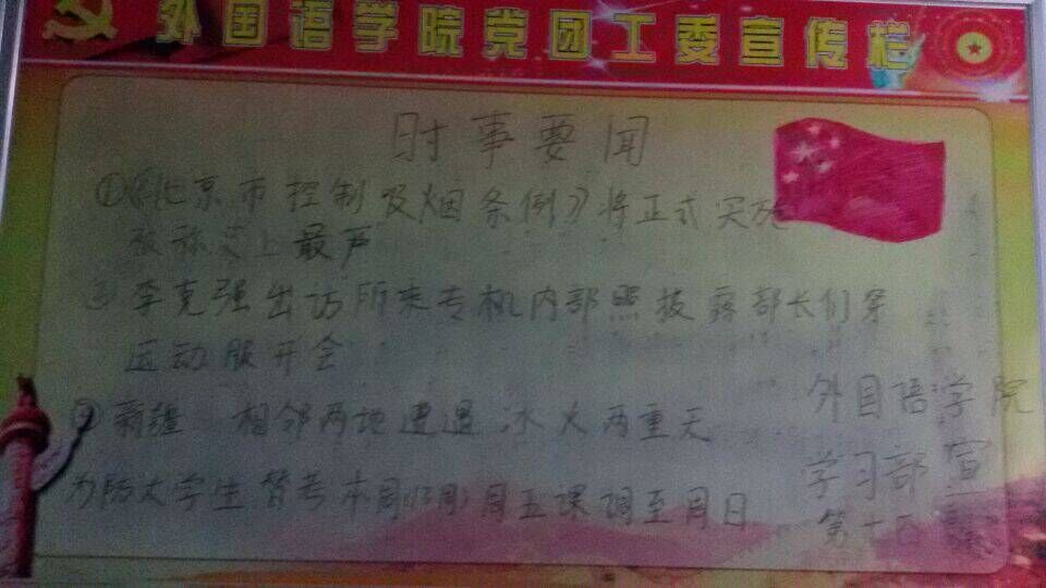 本期板报由学习部完成。内容介绍了本学院最近的安排和一些政治新闻,为了防止大学生替考,我校所有大一学生本周五的课调到周日进行。同时祝愿即将走向高考考场的同学取得一个好成绩。