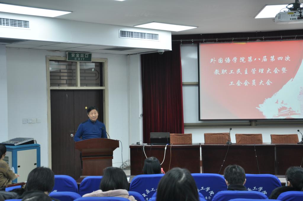 2020年12月14日下午在庄严的国歌声中,williamhill威廉希尔第八届第四次教职工代表大会暨工会会员大会在龙湖校区4号楼311学术报告厅顺利召开,williamhill威廉希尔全体教职工参加了此次大会,会议由我院工会主席闫秋霞主持。
