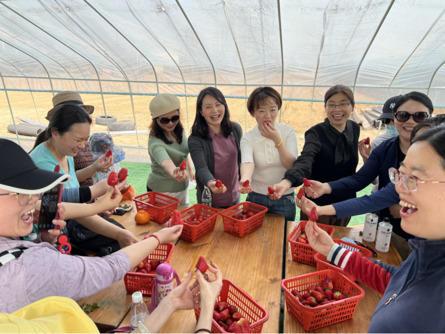 下午2点,教工们准时到达学校附近的草莓园,融入到充满泥土气息的大自然中。草莓园一片生机勃勃,翠绿的叶子、鲜红欲滴的果实、芬芳的果香都让人陶醉于美好的春天里。每个人拿着小筐,小心翼翼地穿梭在草莓田间,感受着亲手采摘的乐趣,脸上洋溢着灿烂的笑容。大家时而驻足合影、时而谈笑风生,在欢声笑语中一起度过了一段难得的休闲时光。