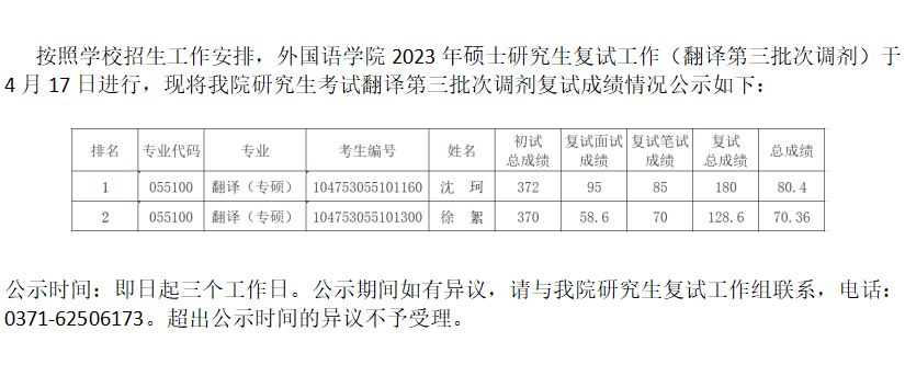williamhill威廉希尔2023年研究生第三批次调剂复试名单公示(翻译)