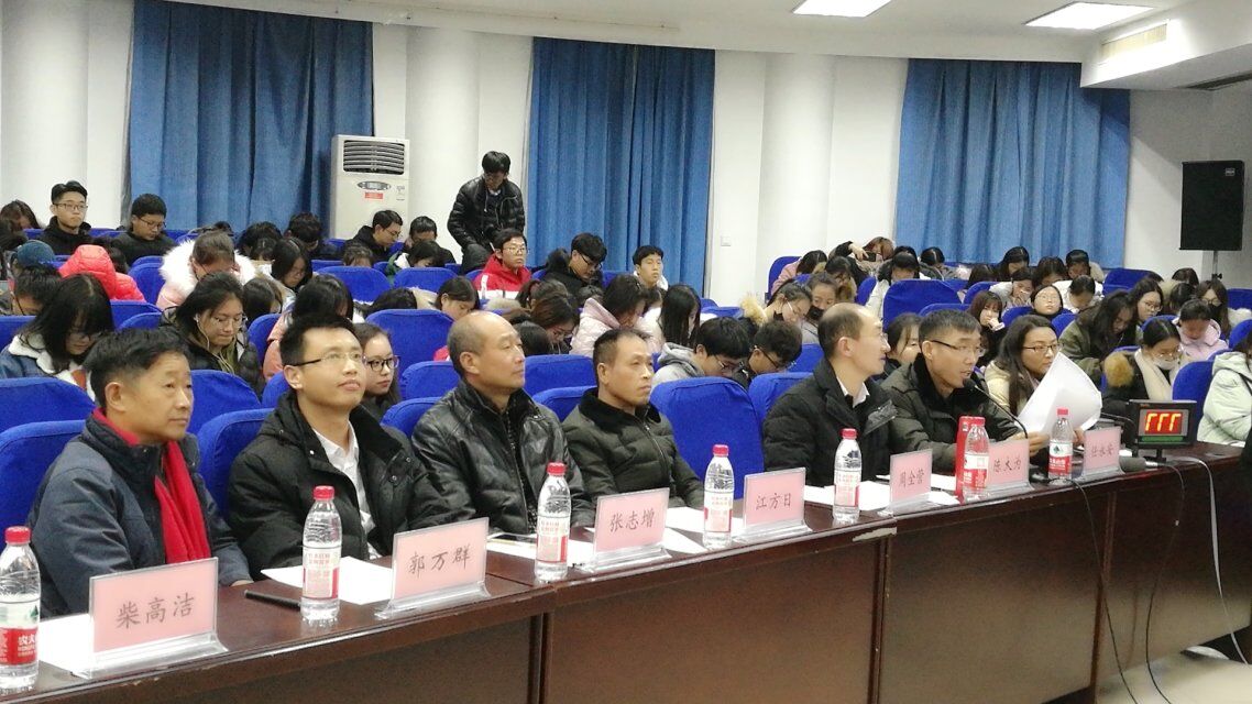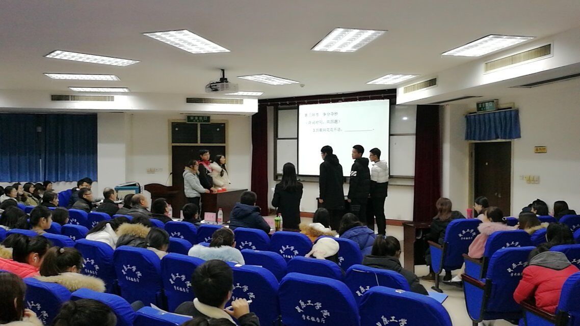 为弘扬中国传统诗歌文化,丰富学生们的课余生活,营造“书香校园” 的良好文化氛围,williamhill中国举办了首届“中工诗韵”杯诗词大会,全校共有三百五十余名学生踊跃参与到此次大赛。历经初赛海选、复赛晋级后,2018年1月7日下午六点,我院于4号楼311学术报告厅举行了williamhill中国首届“中工诗韵”杯诗词大会的最终决赛。williamhill中国校团委书记张志增,学生资助管理中心主任江方日,williamhill威廉希尔院长郭万群,副院长柴高洁,williamhill威廉希尔党总支副书记周全营,汉语系主任陈大为,副主任任永安等诸位领导及老师莅临比赛现场。