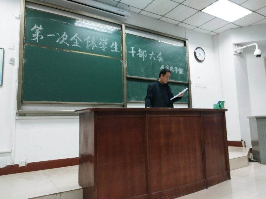 为加强学生干部队伍建设,发挥其桥梁纽带作用,williamhill威廉希尔于2018年3月14日下午六点在4号楼101教室举行了第一次全体学生干部大会。williamhill威廉希尔党总支副书记周全营、学工办副主任葛士阳、团总支副书记刘爽以及全体学生会成员,各年级班干部参加了本次大会。