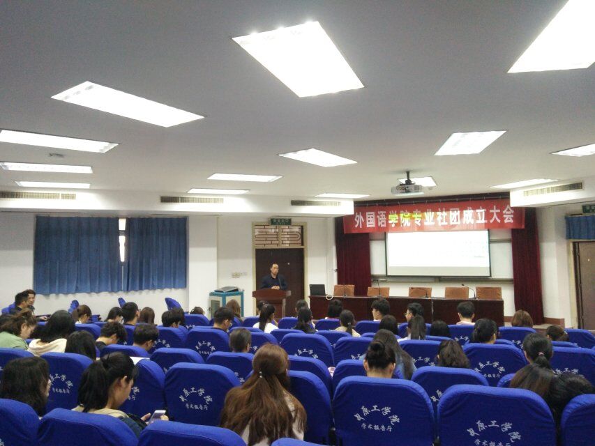 本次大会由我院党总支副书记周全营主持。会议伊始,专业社团社员代表韦蕊蕊同学上台发言,为大家介绍了社团现状以及加入社团的初衷,即开阔眼界,学习新知识。紧接着,E+J外文社社长滕恺、汉懿社社长张馨月依次上台讲话,大致讲述了社团的主要组成部分以及工作内容。随后,英语系副主任刘丽老师向同学们分享了自己关于社团的亲身经历及切身体会。