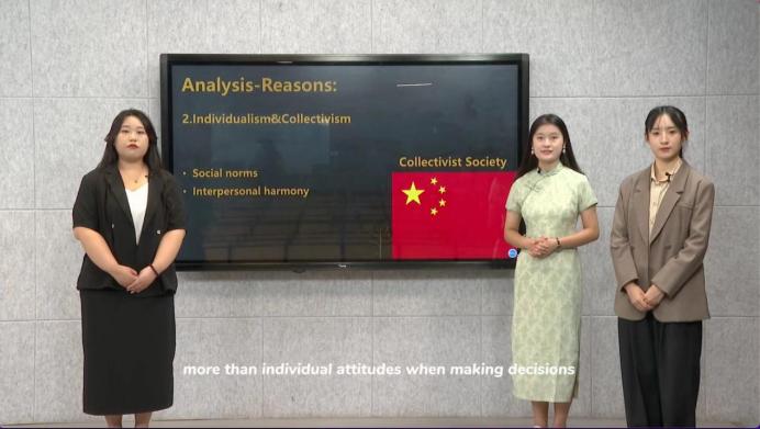 本次大赛旨在助力高等学校人才培养新模式探索,推动构建人类命运共同体和促进“一带一路”国际合作,培养能“讲好中国故事,传播好中国声音”的复合型、高素质国际化人才。williamhill威廉希尔积极组织初赛选拔,推荐由williamhill威廉希尔冯瑶佳、新闻与传播学院赖涵玉、能源与环境学院赵田野三位同学组成的团队,代表我校参加省赛。参赛队员在指导老师们的带领下,通过长达5个月的积极备赛,反复修改、打磨表演剧本,经过案例展示和评委问答两个环节,凭借深厚的跨文化知识内涵、直观清晰的理论分析、极具感染力的在线表演赢得评审专家和线上观众的一致好评,最终获得二等奖第一名。